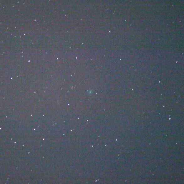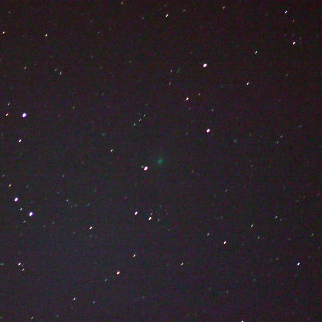 Hannu Määttänen, Helsinki, Pihlajamäki "Valotus ilman seurantaa. Kuvakentän leveys noin 1 aste. Komeetasta alavasempaan SAO 3825." |