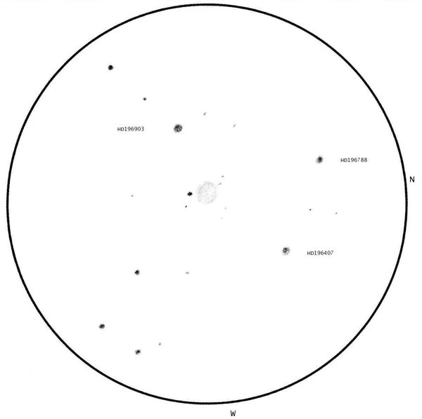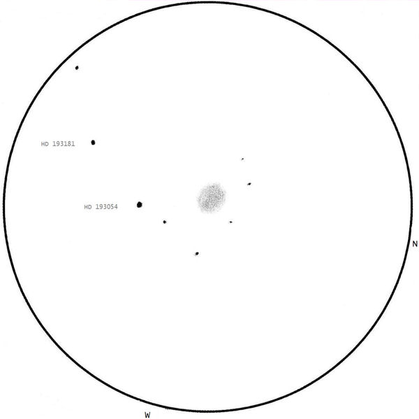 Hannu Määttänen, Helsinki, Pihlajamäki "Kuvakentän leveys noin 1,9 astetta. Korkea deklinaatio mahdollisti pitkähkön valotuksen ilman seurantaa." |