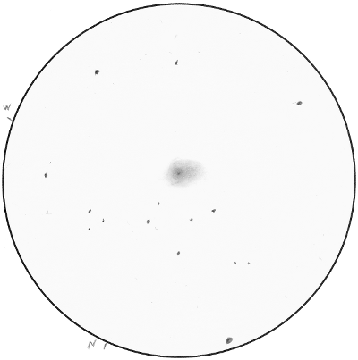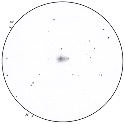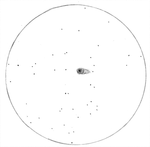 Jyri Lehtinen, Orimattila, Artjärvi, Tähtikallio "DS-tapaamisessa tekemäni havainto komeetasta. Tähtimäinen ydin ja pyöreä koma, joka venyi itään päin elliptiseksi pyrstön tyngäksi." |