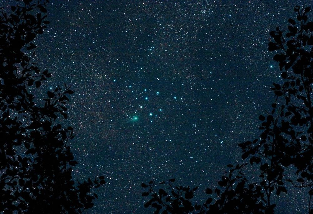 Henri Peltola, Espoo "Havaitsin komeettaa. Löysin paikalle helposti Cartes du Cielistä tulostamani tähtikartan avulla, mutta itse komeetan näkeminen ei ollut niinkään helppoa, koska lähes täysikuu paistoi etelässä ja keli ei ollut muutenkaan kovin kummoinen. Aloin pikkuhiljaa nähdä viitteitä komeetasta hämäränäön muodostuessa. Laitoin 25 mm:n okulaariin UHC-S-suotimen, joka tummensi taivasta, mutta ei korostanut komeettaa hirveästi, 10 mm:n okulaarilla näin komeetassa pistemäisen keskustan aina välillä muutaman sekunnin jaksoissa. En pystynyt erottamaan minkäänlaista koman suuntaa. Kohteen korkeus horisontista 36 astetta." |