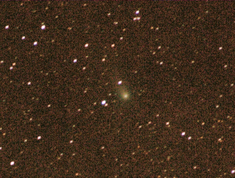 Vesa Kousa, Teneriffa (etelä), Kanarian saaret, ESPANJA (28° 06' N, 16° 45' W) Klo 21.43 UT, koma 3,2', pyrstö >5,5' PA 110° "Liike mielestäni meihin nähden hitaampaa kuin aikaisemmin tänä vuonna." |