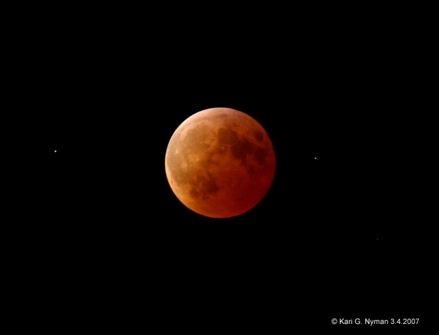 Yöllä 3.–4.3. nähtiin Suomessa täydellinen kuunpimennys. Se oli näkyvissä koko maassa hyvin ja sää oli selkeä läntisessä Suomessa. Pimennys oli syvimmillään varsin tumma.