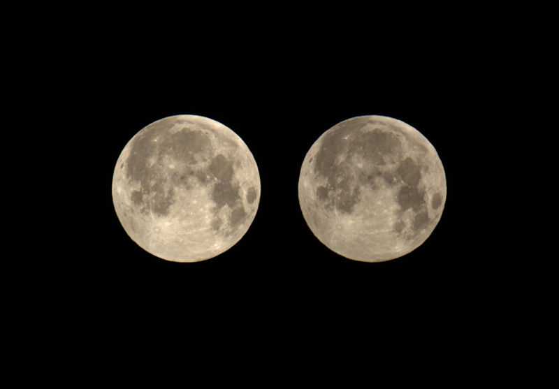Kari Kalervo, Vihti Klo 3.10 ja 3.39 "Kuvasin Kuuta. On vaikea sanoa, johtuuko tummuminen pelkästään Kuun laskusta vai onko mukana pimennystäkin. Kuvat on otettu telellä samalla valotusajalla, aukolla ja herkkyydellä. Kuvat on muutettu raakkuvista tismalleen samoilla parametreilla tiffiksi, yhdistetty ja muutettu jpg:ksi. Oikeanpuoleisen Kuun tummuminen johtunee pelkästään Kuu laskusta. En kyllä näe tuossa pimennystä? Kuvausolosuhteissa ei tapahtunut muutoksia: Kuu oli molemmissa kuvissa selkeällä kohdalla taivasta. Paljain silmin tai kiikarilla en myöskään havainnut mitään varmaa (paljain silmin tuli kyllä kaikenlaista kuviteltua, mutta voi olla, että sekin menee vain Kuun laskemisen aiheuttaman himmenemisen piikkiin)." |