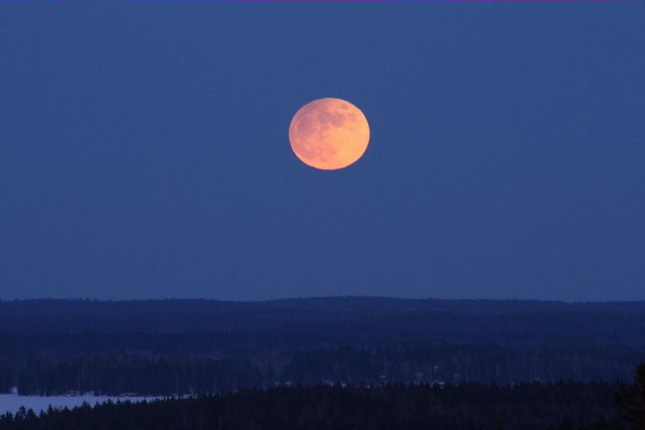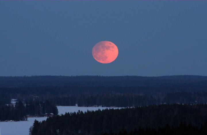 Kari Nyman, Tampere, Kauppi Klo 17.10 "Kuun puolivarjopimennys Tampereen Ursan tähtitornilla kuvattuna koillisen suuntaan täydenkuun ollessa noin 2 asteen korkeudella." Ks. myös http://tinyurl.com/d5p9l3 |