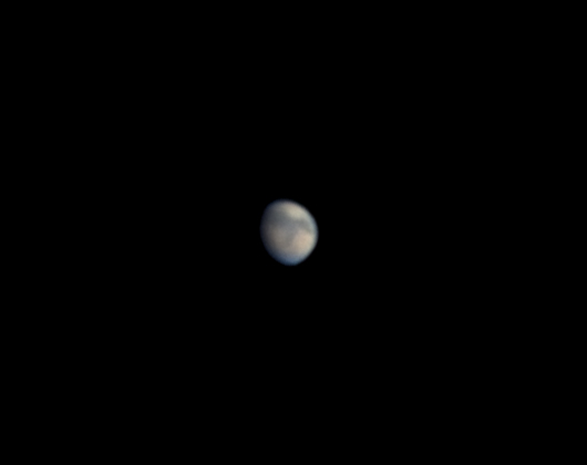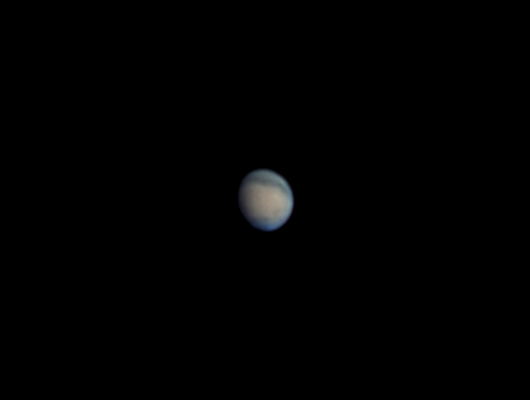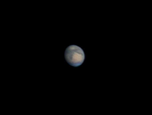 "Keli selkeni pitkän pilvisyysjakson jälkeen poihjoisesta puhaltavan kylmän rintaman tuulen kera. Ilman lämpötila laski illan +1 asteesta muutamassa tunnissa -4 pakkaseen. Kuvausseeing oli ilmavirtauksesta johtuen "nopea" eli Mars oli melko paikoillaan - ei lainehtinut tai pomppinut kuvassa niin kuin yleensä, vaan hyvin pientä (kaarisekunnin tai parin) ja nopeaa värinää, joka kuitenkin melko tehokkaasti sotki pienimmät yksityiskohdat, tosin hyviäkin hetkiä mahtui mukaan. Seeingin arvioisin kolmosen ja kakkosen väliin (lähempänä kolmosta).