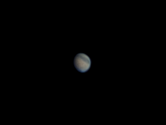 Kokeilin ensimmäisen kerran kuvausta 1/2 (eli 384x288) resoluutiolla - normaalisti olen kuvannut täydellä 768x576 tallennusformaatilla. 1/2 reson etu on, että pääsee 25 fps tallennukseen ja pidempään 4 min 17s (6400 framea) tallennuspituuteen (max resolla 20 fps, max 1 min 20 s eli yhteensä 1600 framea) jolloin on helpompi napata hyvä hetkittäinen seeing. Kyseiseen kuvaan valitsin manuaalisesti 500 parasta 4500 framen joukosta, pinottu Registax 4:llä ja Photoshopilla vähän tasoteltu."