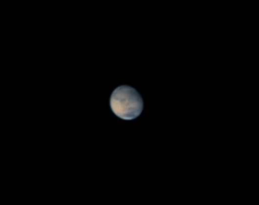 "Ensimmäisessä kuvassa Syrits Major ja Hellas näkyvissä. Toinen kuva on suhteellisen hyvä kuva nyt jo kaukaisesta Marsista. Kolmannessa seiing huononee, mutta silti ok kuva Marsista."
