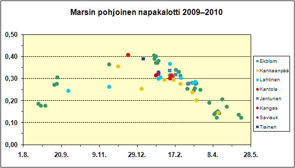 Lukuarvo on laskettu mittaamalla havaintokuvista ja -piirroksista napakalotin halkaisija ja jaettu se Marsin kiekon halkaisijalla. Havainnoissa ei ole huomioitu kalotin mahdollista epäsymmetrisyyttä.