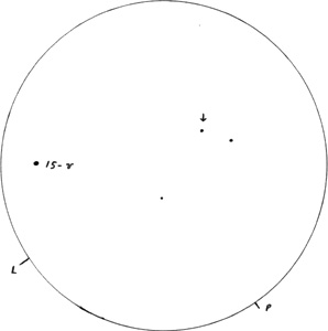"Planeetta sijaitsi puolisen astetta Kauriin ypsilon-tähdestä itään ja näkyi noin 8 mag tähtenä. Havaintohetkellä planeetan etäisyys Maasta oli noin 4 450 800 000 km."