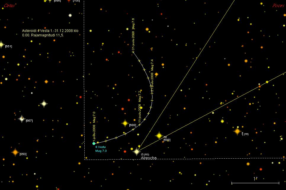 4 Vesta on joulukuun alussa 0,9° itään tähdestä alfa Psc