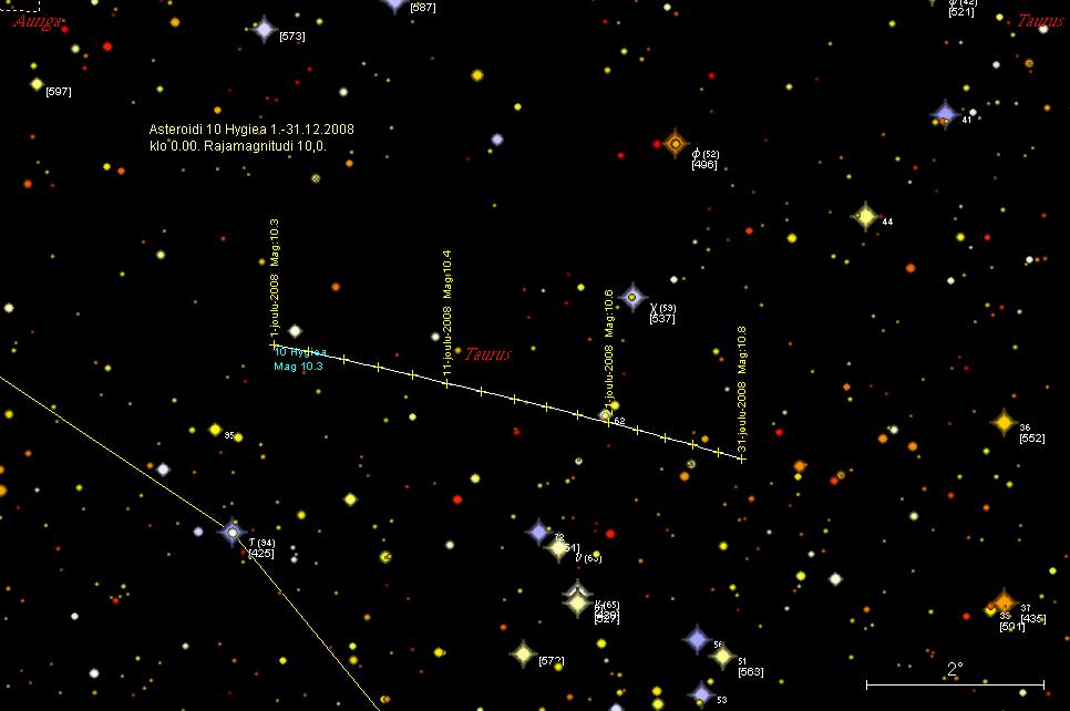 10 Hygiea on joulukuun alussa kaksi kaariminuuttia pohjoiseen tähdestä tau
