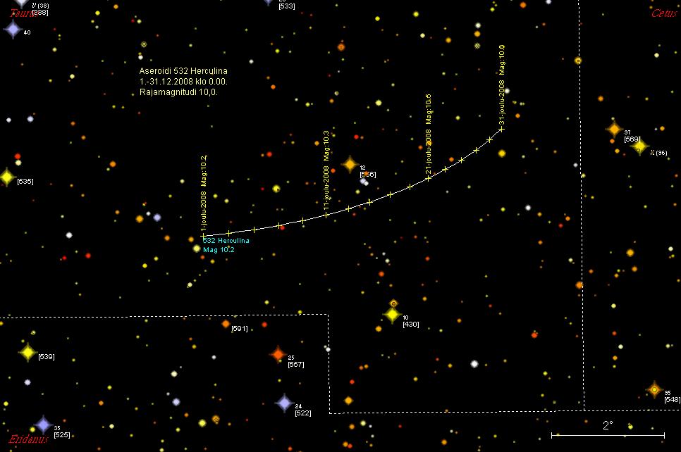 532 Herculina on joulukuun alussa Härän tähdistön lounaisnurkassa,