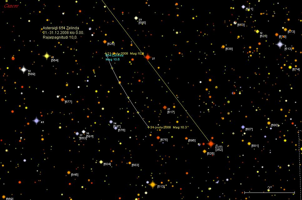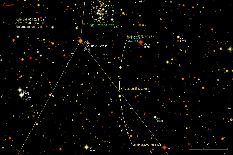 pikkuplaneetta on 2,5° eteläluoteeseen tähdestä beta Cnc (3,52 mag).