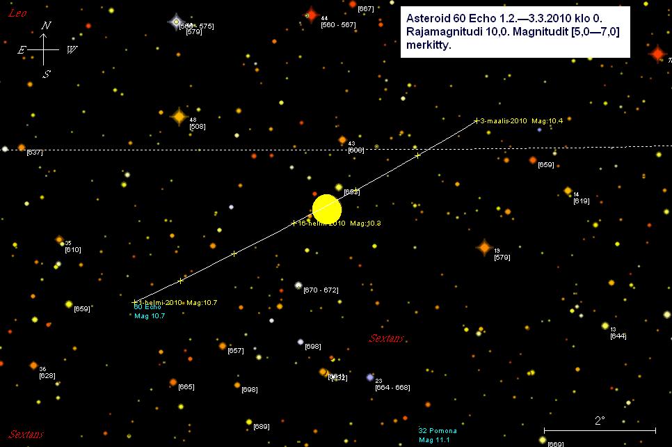60 Echo on helmikuun alussa viisi astetta eteläkaakkoon Rhoo Leoniksesta (3,83 -
