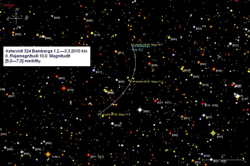 Asteroidi on yöllä 18./19. helmikuuta 0,3 astetta pohjoiseen