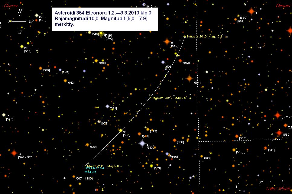 eli 1,4 astetta. Asteroidi on yöllä 15./16. helmikuuta tähtien Eeta