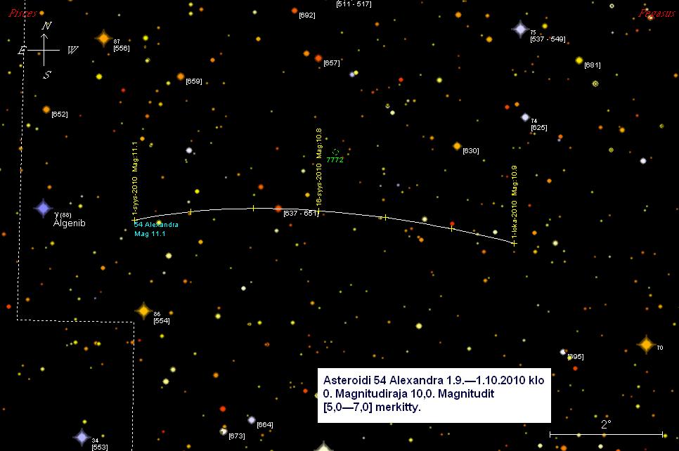 54 Alexandra on syyskuun alussa 1,6 astetta Länteen Algenibistä (Gamma