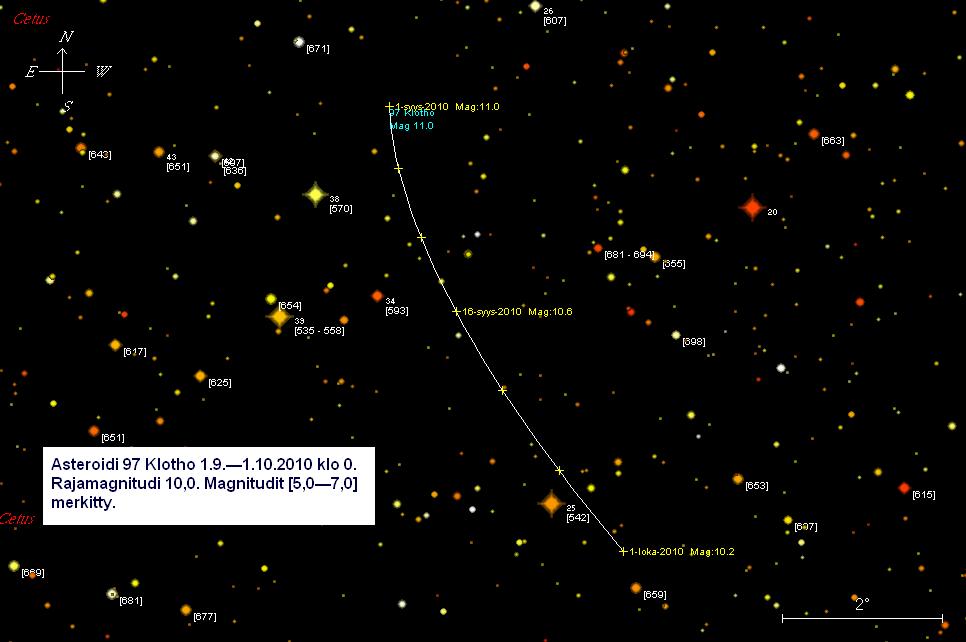 97 Klotho on sttskuun alussa kahdeksan astetta etelään Epsilon Pisciumista