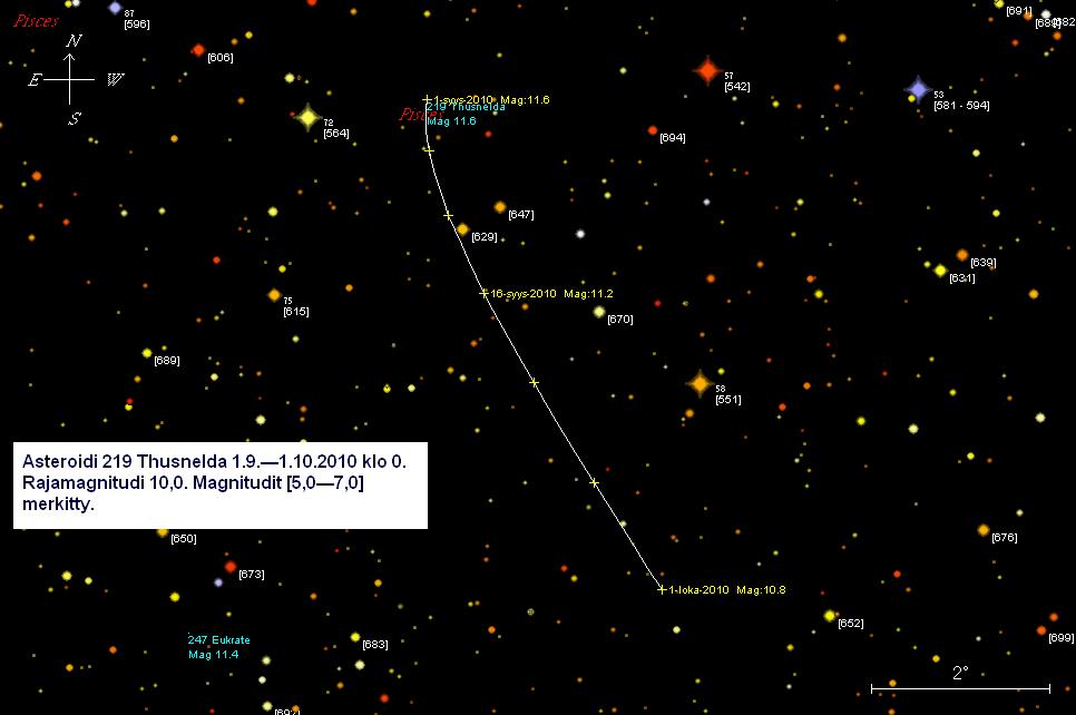 219 Thusnelda on syyskuun alussa seitsemän astetta pohjoiseen Epsilon Piscium