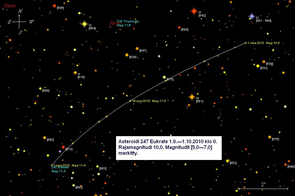 247 Eukrate on syyskuun alussa kaksi astetta koilliseen Epsilon Piscium