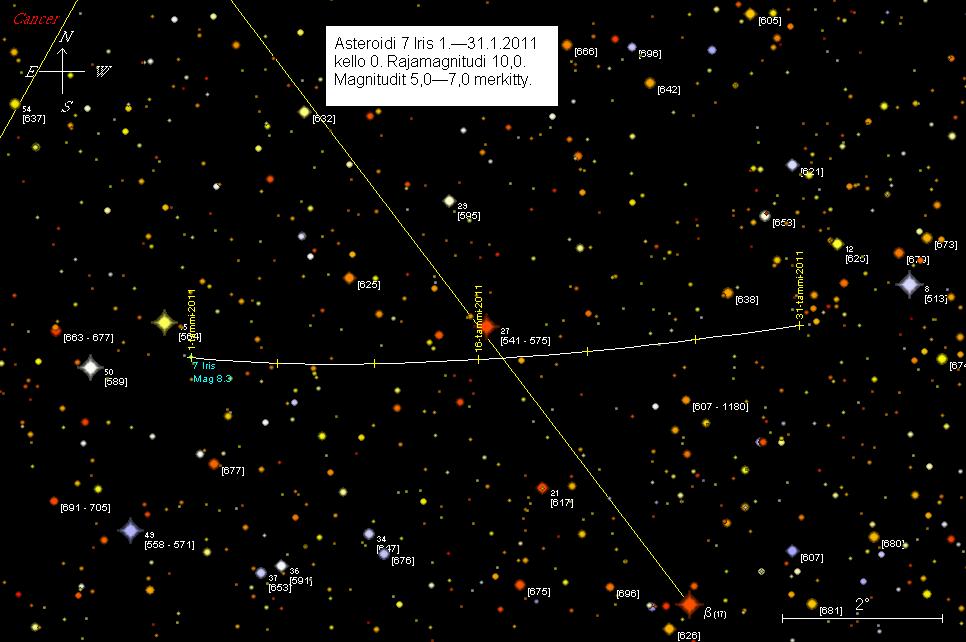 16. tammikuuta Iris ohittaa 0,4 asteen etäisyydeltä 27 Cancri -täden