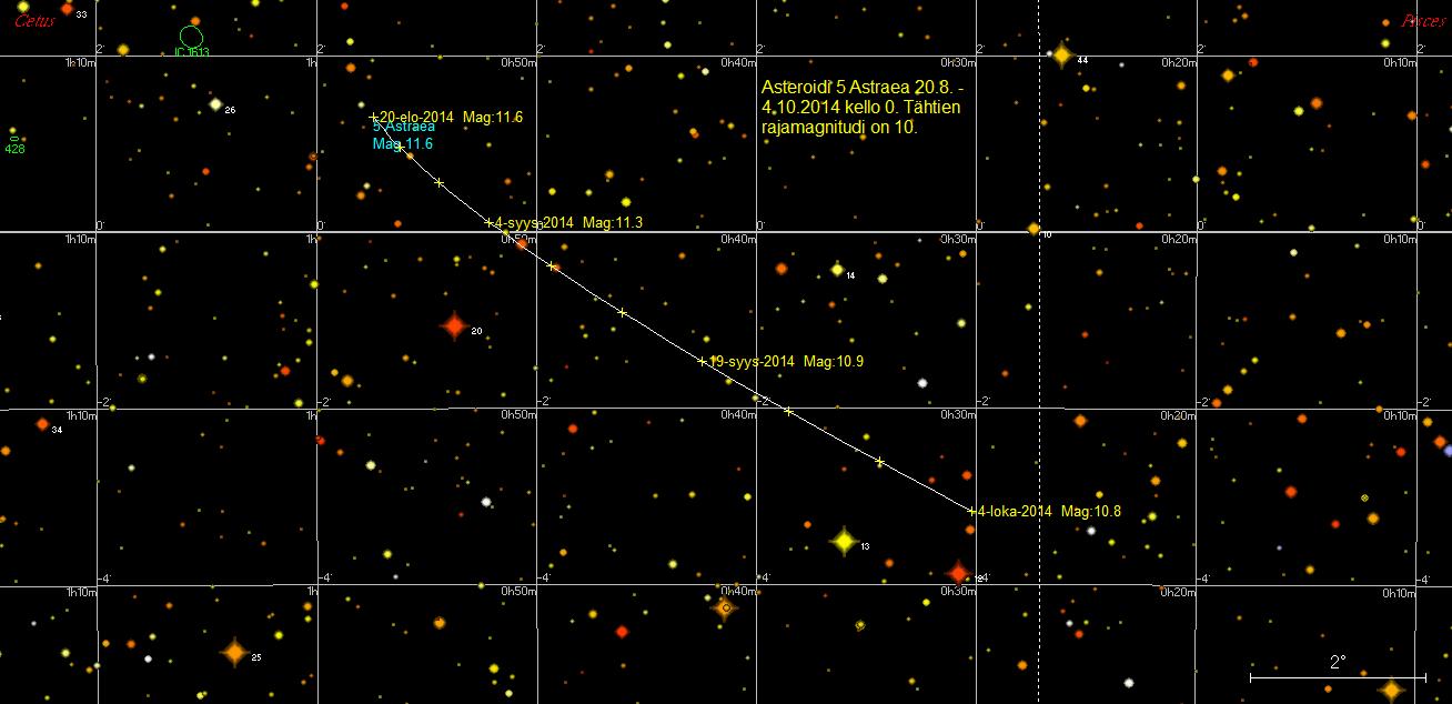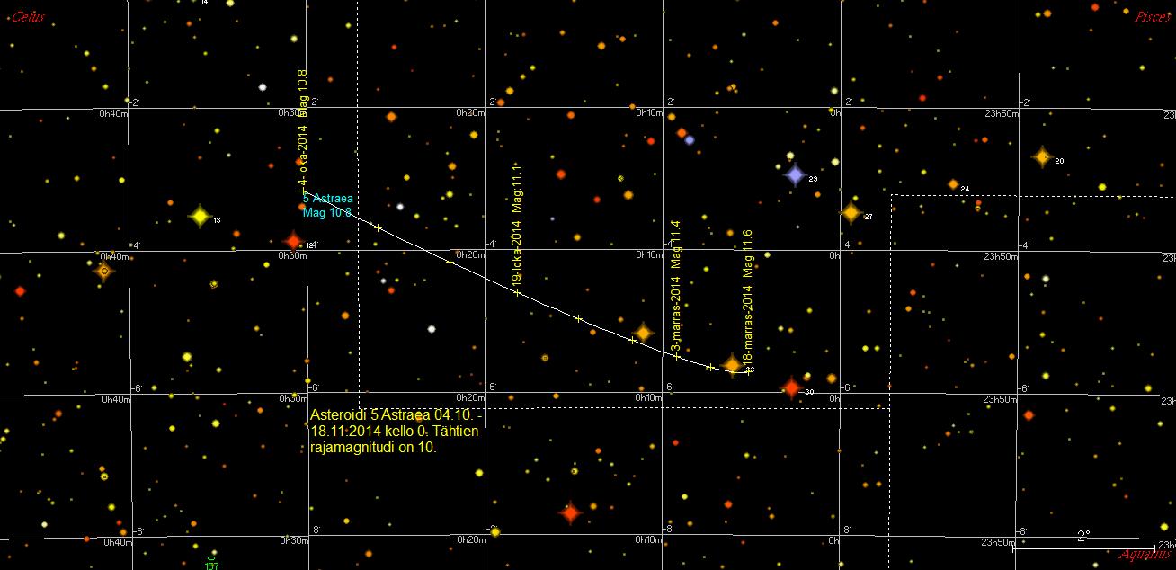 etäisyydeltä 12 Ceti -tähden (5,73 mag). Havaintokauden lopulla Astraea ohittaa alle