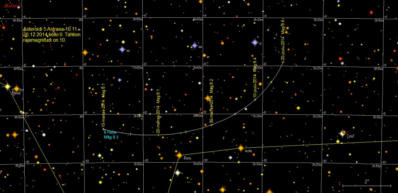 tähteä. Asteroidi ohittaa illalla 19. joulukuuta etelän puolelta runsaan kaariminuutin