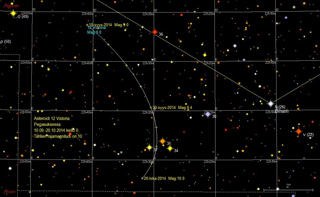 etäisyydeltä. Asteroidin liike muuttuu eteneväksi 8. lokakuuta. Victoria on 9. lokakuuta