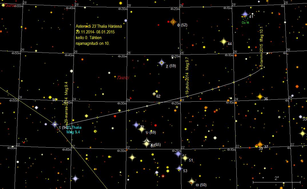 tähti. Tau Tauri on saanut samaan luetteloon tunnuksen MCA 16. Thalia ohittaa 9.-12. joulukuuta pohjoisen