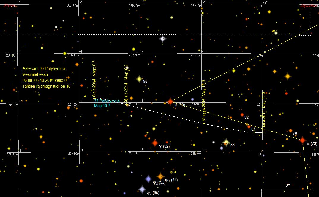 (4,62 mag) asteroidi on 1,4 astetta etelään. Asteroidi ohittaa mainitun tähden lounaan puolelta