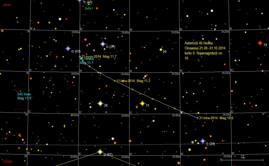 | 46 Hestia | 01.11.2014 | 10,6 | Aries, Pisces |