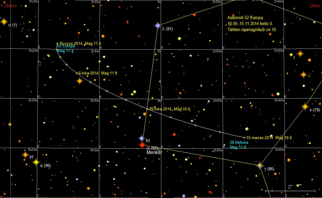 | 52 Europa | 08.11.2014 | 10,5 | Taurus |
