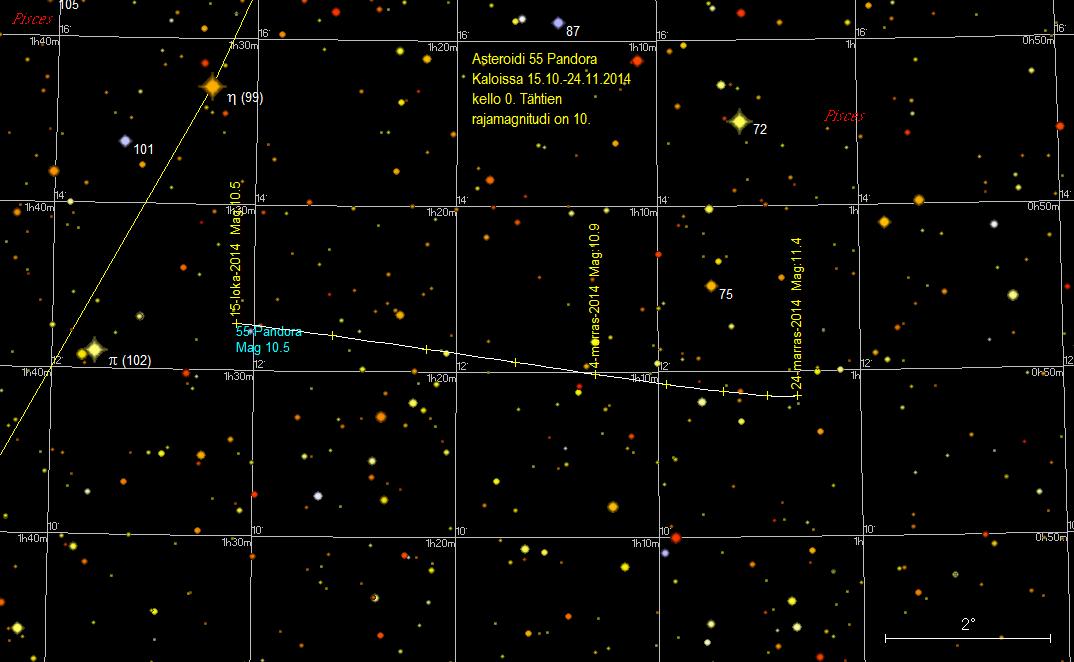 | 55 Pandora | 18.10.2014 | 10,5 | Aris, Pisces |