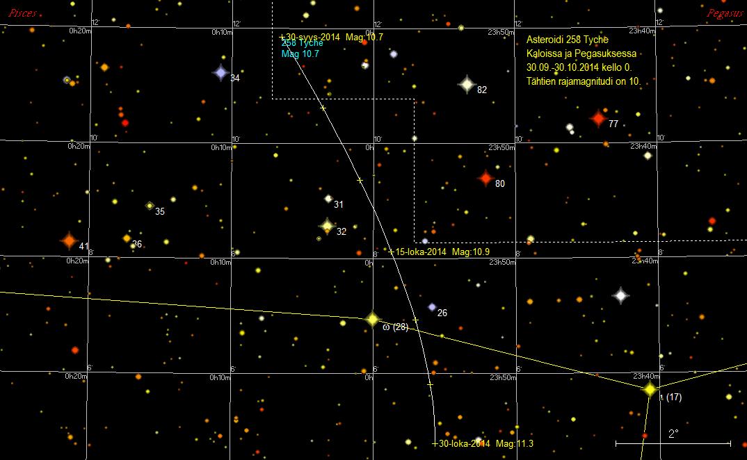 | 258 Tyche | 27.09.2014 | 10,7 | Pisces, Pegasus |