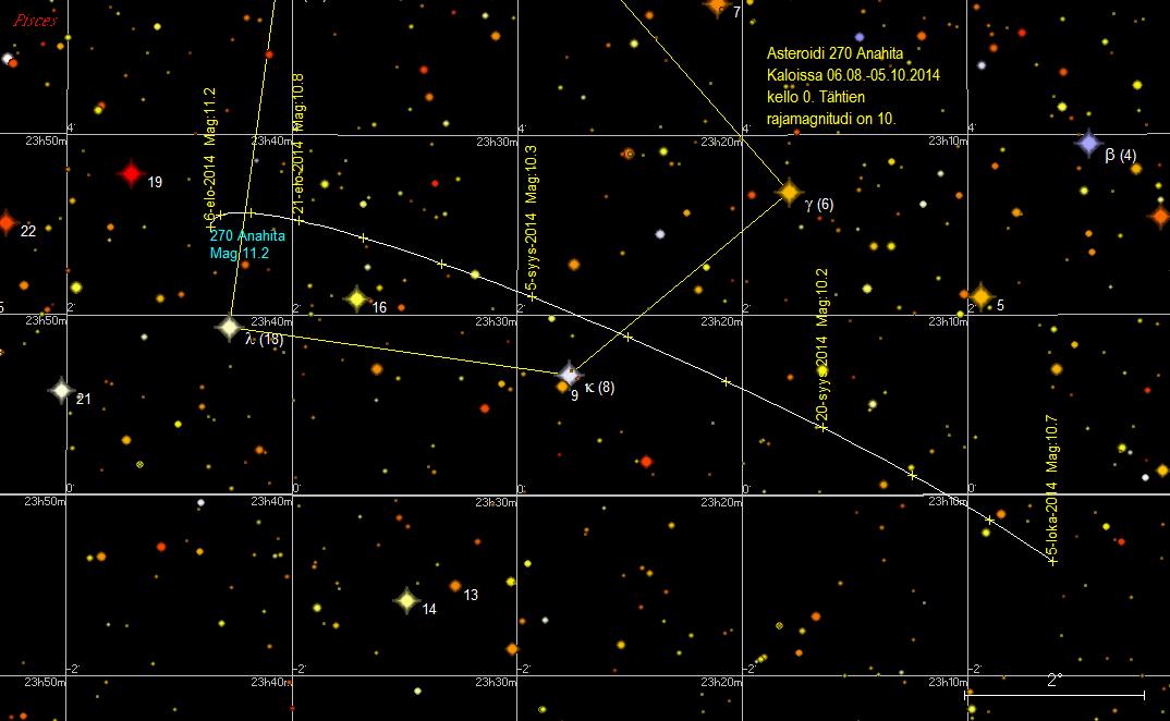 päivämäärää. Anahita ohittaa 7./8. syyskuuta luoteen puolelta Kappa Piscium