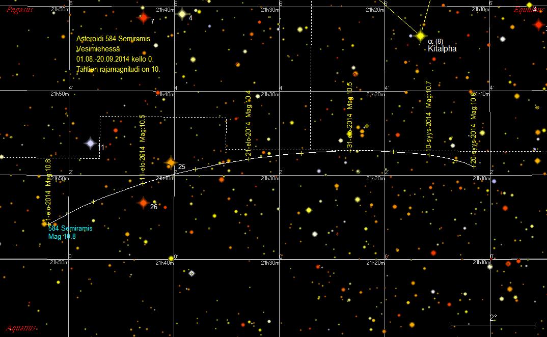 | 584 Semiramis | 16.08.2014 | 10,4 | Aquarius |