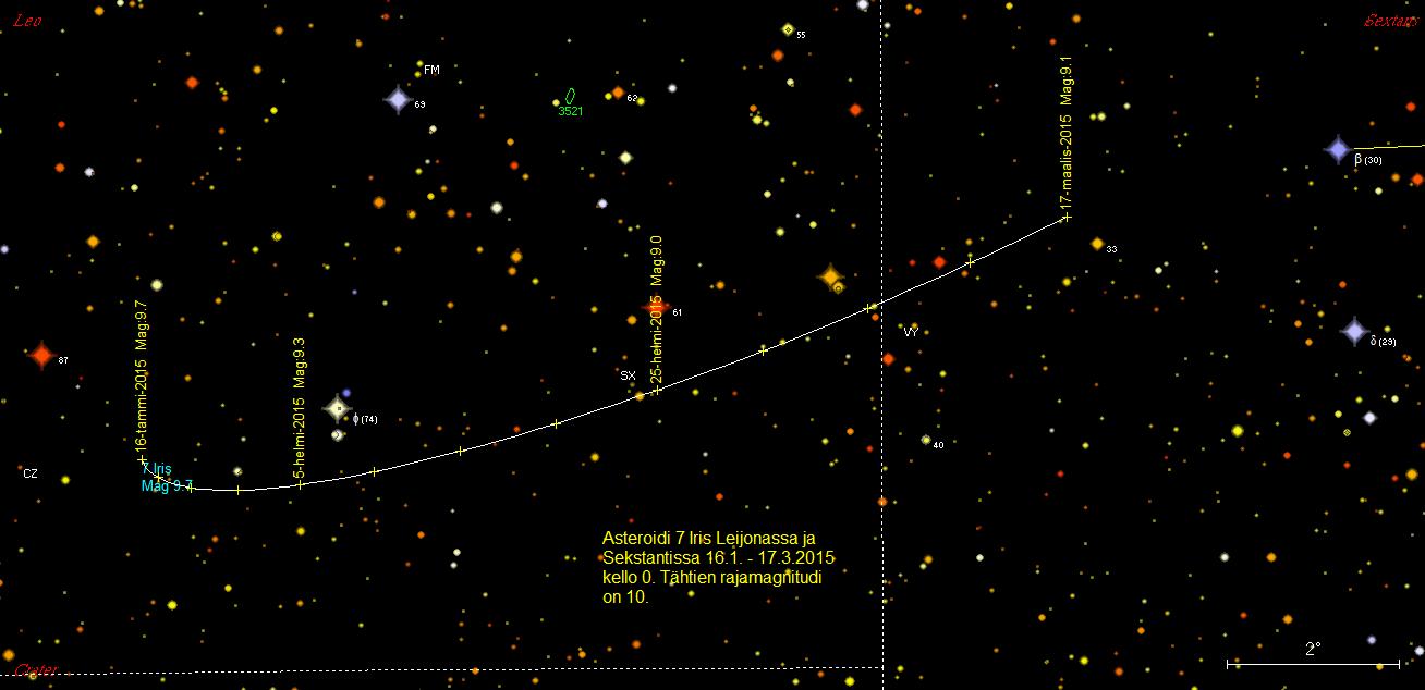 | 7 Iris | 14.01.2015 | 04.03.2015 | 8,9 | 22.04.2015 | Leo, Sextans |