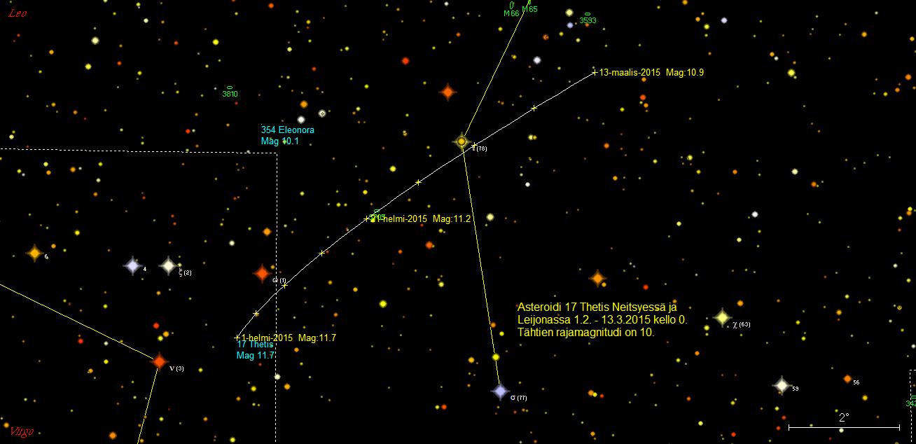 | 17 Thetis | 23.01.2015 | 09.03.2015 | 10,8 | 25.04.2015 | Virgo, Leo |