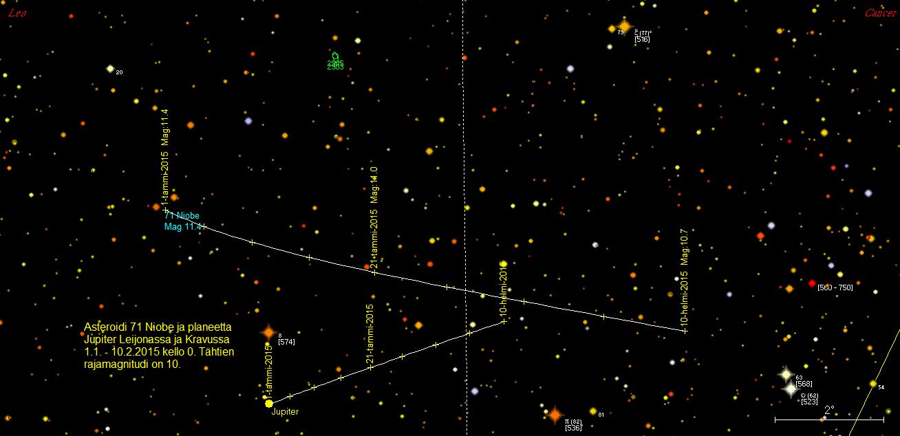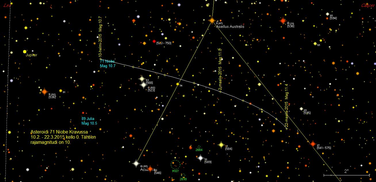 | 71 Niobe | 15.12.2014 | 04.02.2015 | 10,6 | 31.03.2015 | Leo, Cancer |