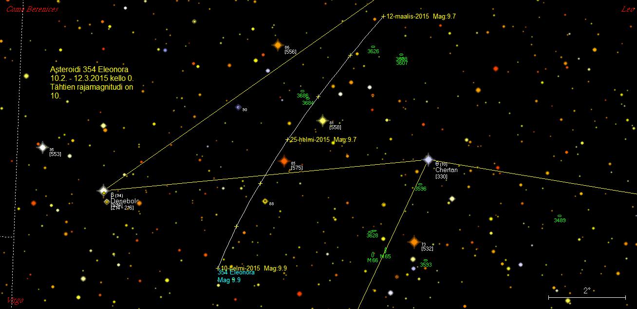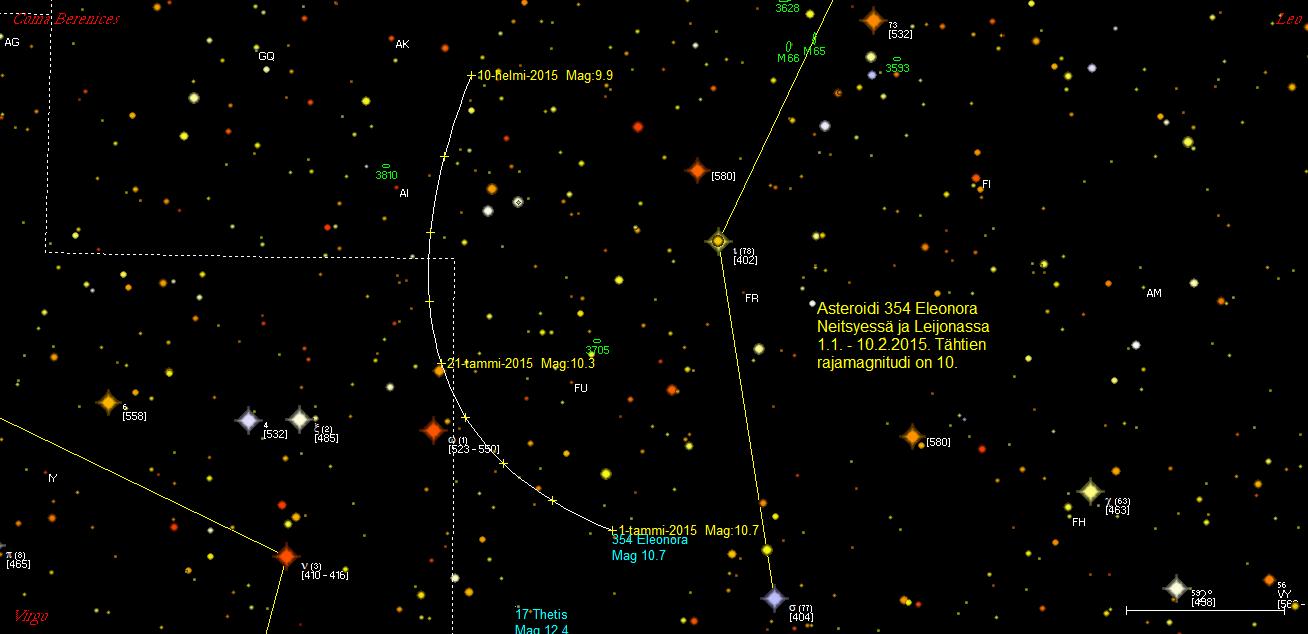 Asteroidi 354 Eleonora on tammikuun alussa kaksi astetta itäkoilliseen Digma Leonis -tähdestä