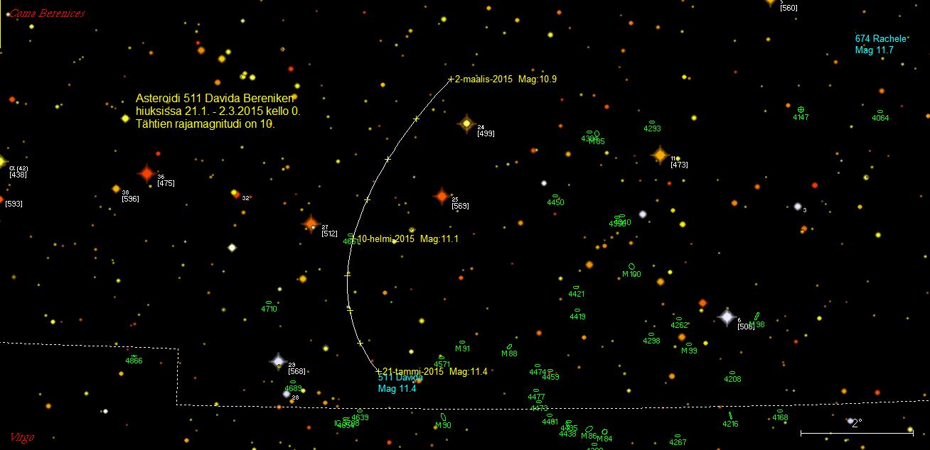 | 511 Davida | 03.02.2015 | 27.03.2015 | 10,9 | 14.05.2015 | Coma Berenices |