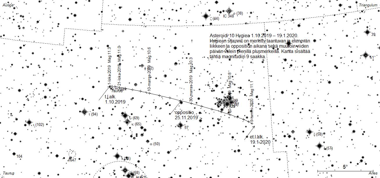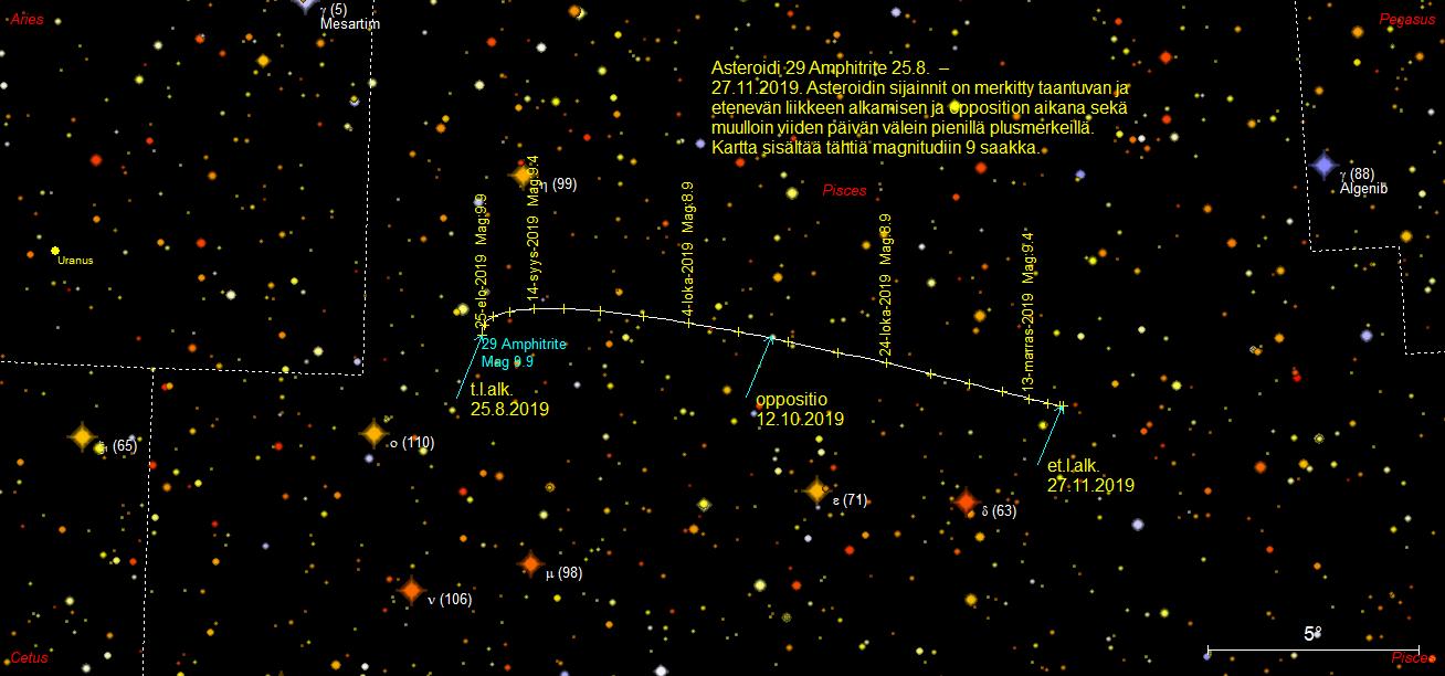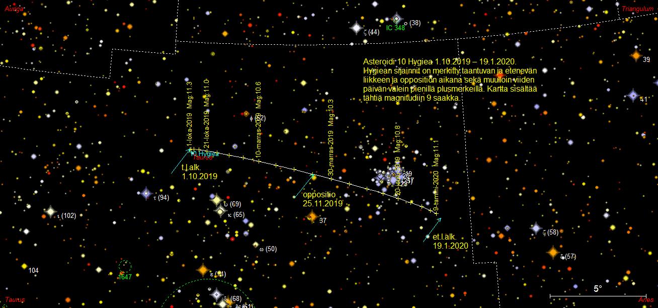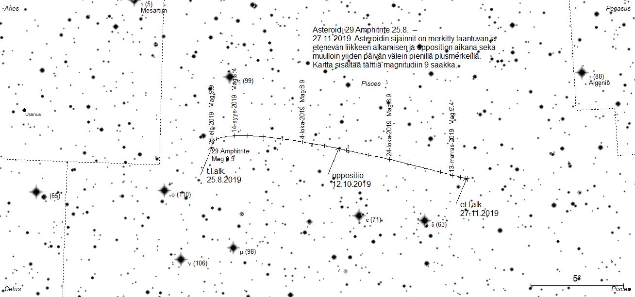 himmeys tai valoisa taivas rajoita havaintokautta. Asteroidien sijainnit ja päivämäärät taantuvan ja etenevän liikkeen