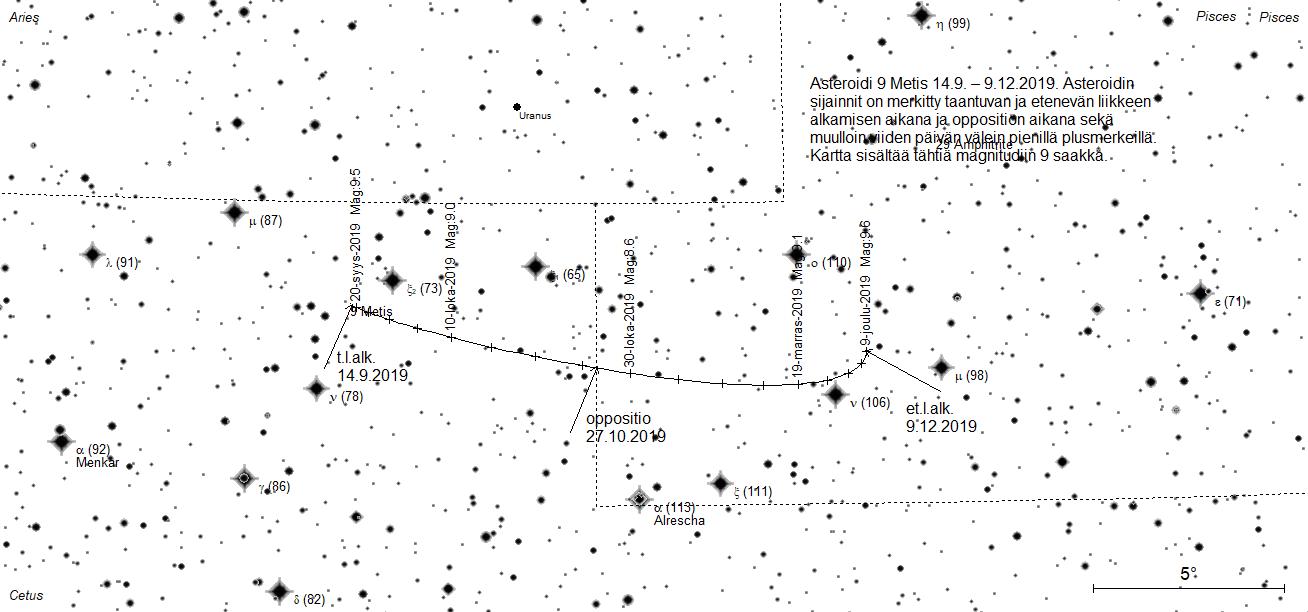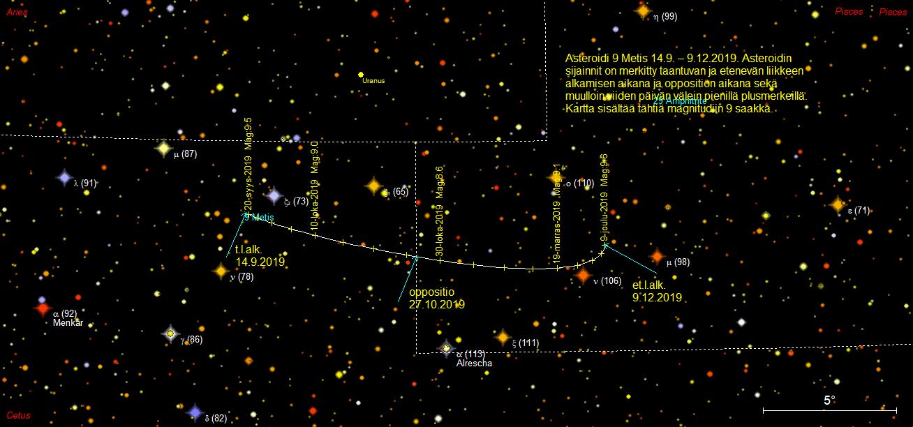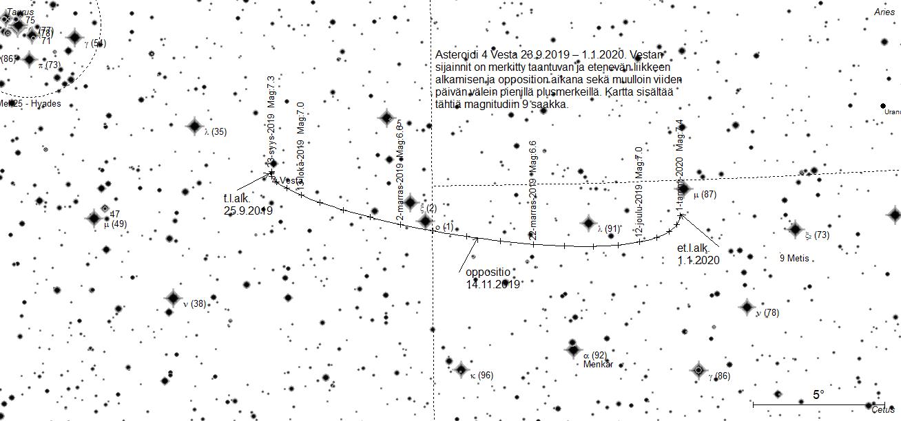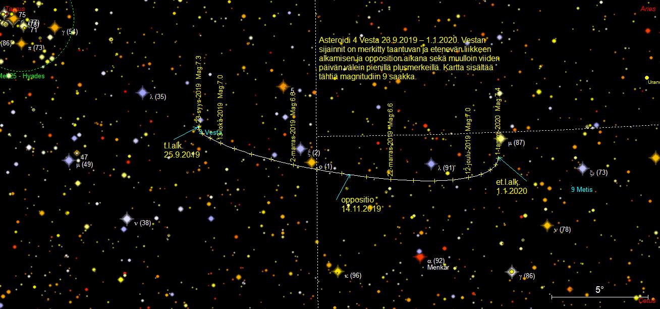 himmeys tai valoisa taivas rajoita havaintokautta. Asteroidien sijainnit ja päivämäärät taantuvan ja etenevän liikkeen