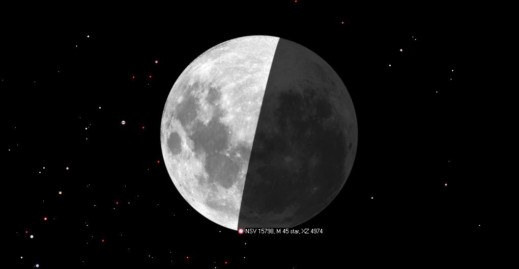 Tähti ZC 0564 (6,2 mag) sivuaa Kuun pohjoista reunaa Uudenkaarlepyyn ja Savonlinnan