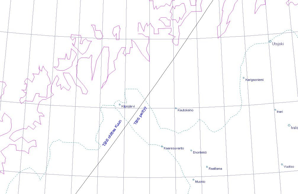 | 21 30 | 68 58 08 | 02.22.36 | | 27 | 92 | 353.1 | 2.18 | -0.49N | Kilpisjärvi, Gomatoaivi |