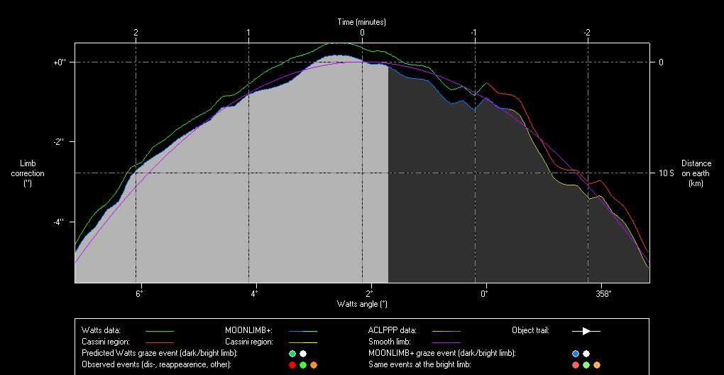 Seuraava taulukko antaa tähden ZC 0714 (95 Tauri) sivuamisviivan kulun pituus- ja