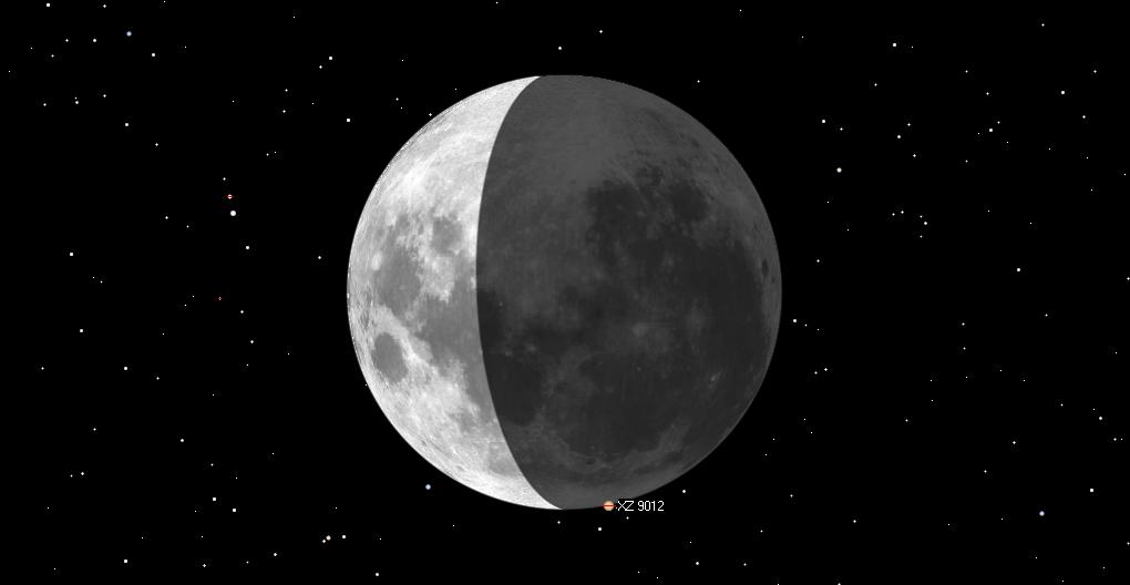 Tähti ZC 0982 (6,8 mag) sivuaa Kuun pohjoista reunaa Vaasan ja Lohjan