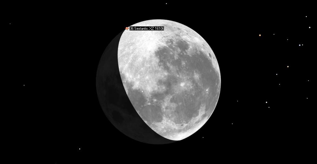 tähti ohittaa Kuun. Kuun pohjoisnapa on kääntynyt 5,9 astetta Maahan päin.