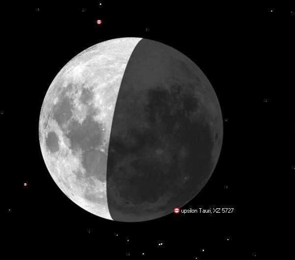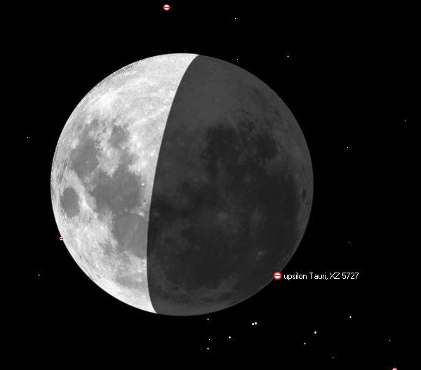 Ypsilon Tauri peittyy Helsingissä 12.03.2011 klo 00.58.