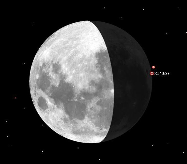 Tseta Geminorum B, Mekbuda peittyy Utsjoella 14.03.2011 klo 19.07.22. Magnitudi 7,7, väli 100", suuntakulma 351°.